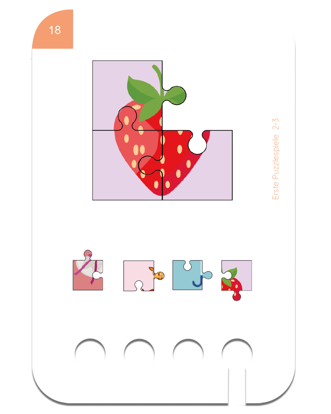„Erste Puzzlespiele“ ist ein altersgerechtes Lernspiel für Kinder von 2 bis 3 Jahren. Die 24 abwechslungsreichen Aufgabenkarten wurden speziell für den Kölner Lochkasten vom Kölner Lernspielverlag entwickelt und fördern spielerisch das Erkennen von Formen, Bildern und einfachen Zusammenhängen.