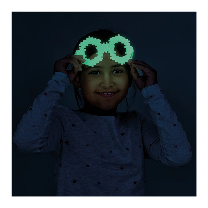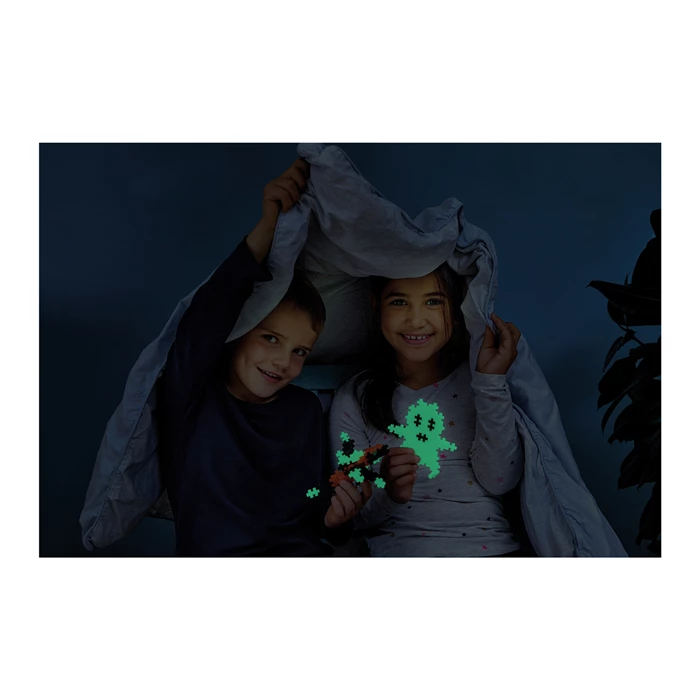 Besonders faszinierend: Die gebauten Modelle leuchten im Dunkeln weiter – das macht Plus-Plus Nachtleuchtend zum idealen Begleiter für kreative Projekte, Spielnachmittage und ruhige Abendstunden.