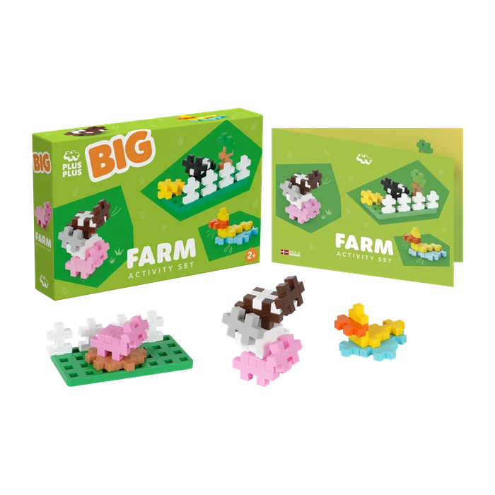 Mit dem Plus-Plus BIG Farm Set können Kinder ab 2 Jahren spielerisch ihre eigene Bauernhof-Welt erschaffen. Ob Tiere, Traktor oder Scheune – die großen Plus-Plus Steine sind perfekt für kleine Hände geeignet und fördern Kreativität, Feinmotorik und erste Bauversuche. Dank der bunten Farben und vielseitigen Steckmöglichkeiten entstehen immer wieder neue Figuren und Szenen.