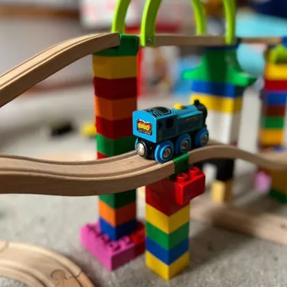 Die Toy2 Track Connectors sind so gestaltet, dass sie sich mit vielen bekannten Spielsystemen kombinieren lassen – z. B. mit Holzeisenbahnschienen oder Bausteinen. Dadurch lassen sich bestehende Sets erweitern und noch komplexere Bauideen verwirklichen. Die einheitliche Schienenhöhe sorgt dabei für stabile und gleichmäßige Verbindungen.
